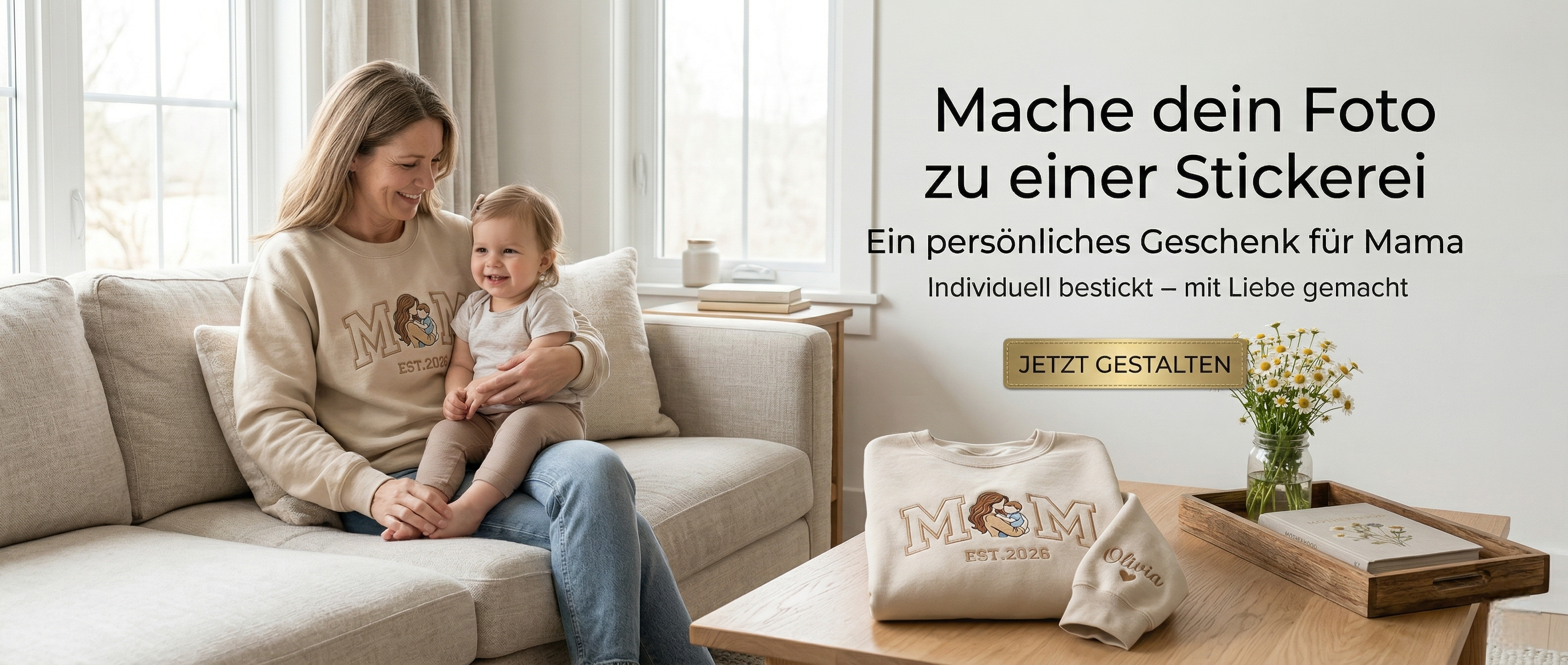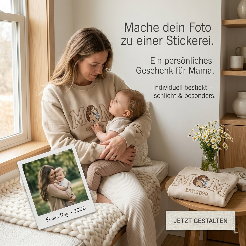Personalisiertes, besticktes Sweatshirt zum Muttertag | Foto in Stickerei verwandeln – Einzigartiges Geschenk für Mama