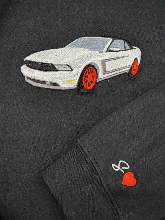 Bestickter Auto-Kapuzenpullover, Autofoto bestickt, Benutzerdefinierter Autonamen-Kapuzenpullover, Oldtimer bestickt, Jubiläumsgeschenke für Autoliebhaber