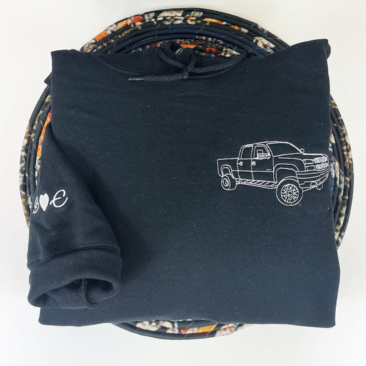 Besticktes Sweatshirt mit Autoumriss, Hoodie, Autoportrait, Truck Portrait, Papa Geschenk, Personalisiertes Sweatshirt, Geschenk für ihn