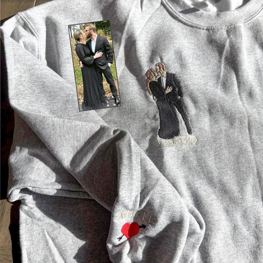 Hoodie mit besticktem Pärchenporträt, personalisiertes Sweatshirt nach Foto, liebevolles Geschenk