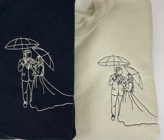 Individuell besticktes Sweatshirt mit Umrissfoto, personalisiertes Porträt vom Foto, T-Shirt, Paar-Hoodie für Sie und Ihn