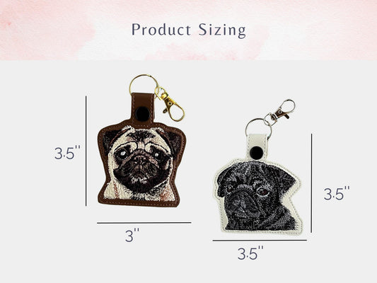 Benutzerdefinierter bestickter Mops-Schlüsselanhänger – realistischer Schlüsselanhänger aus Kunstleder, ideales Geschenk für Hundeliebhaber