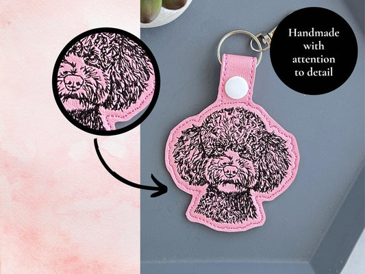Maßgeschneiderter Bestickter Pudel-Porträt-Schlüsselanhänger - Skizzenstil Schlüsselanhänger oder Taschenanhänger, Mehrere Farboptionen, Perfektes Geschenk für Hundeliebhaber