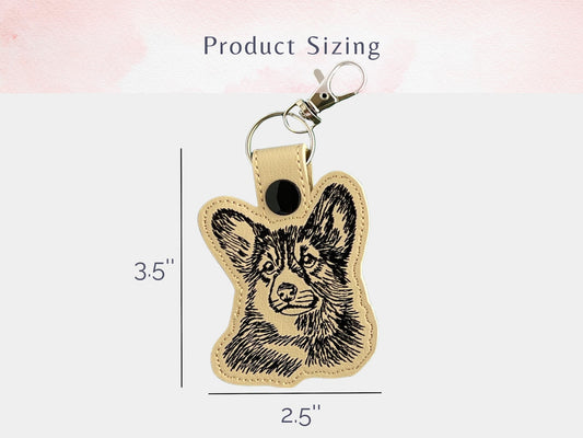 Maßgeschneiderter Bestickter Corgi-Porträt-Schlüsselanhänger - Skizzenstil Schlüsselanhänger oder Taschenanhänger, Mehrere Farboptionen, Perfektes Geschenk für Hundeliebhaber
