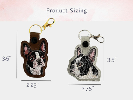 Maßgeschneiderter Bestickter Boston Terrier Schlüsselanhänger - Realistischer Schlüsselanhänger oder Taschenanhänger, Perfektes Geschenk für Hundeliebhaber
