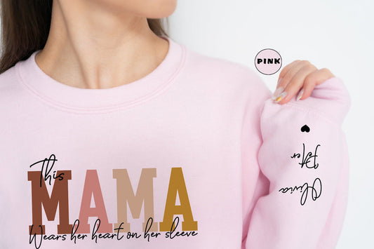 Benutzerdefiniertes Mama besticktes Sweatshirt mit Kindernamen am Ärmel – Geschenk für neue Mutter personalisiert