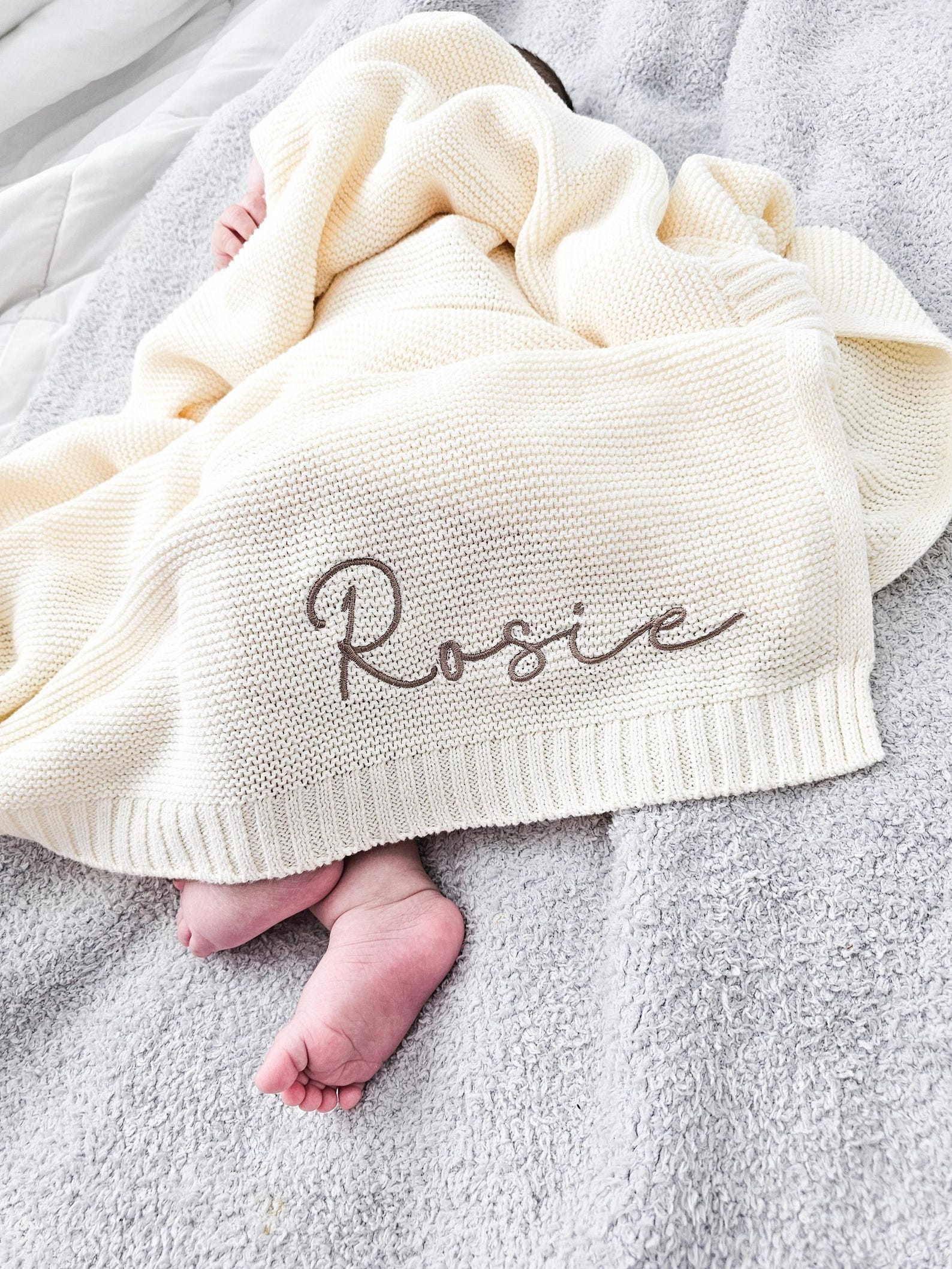 Taufgeschenk Idee - Elegante Namensdecke aus weicher Baumwolle Jetzt beliebt