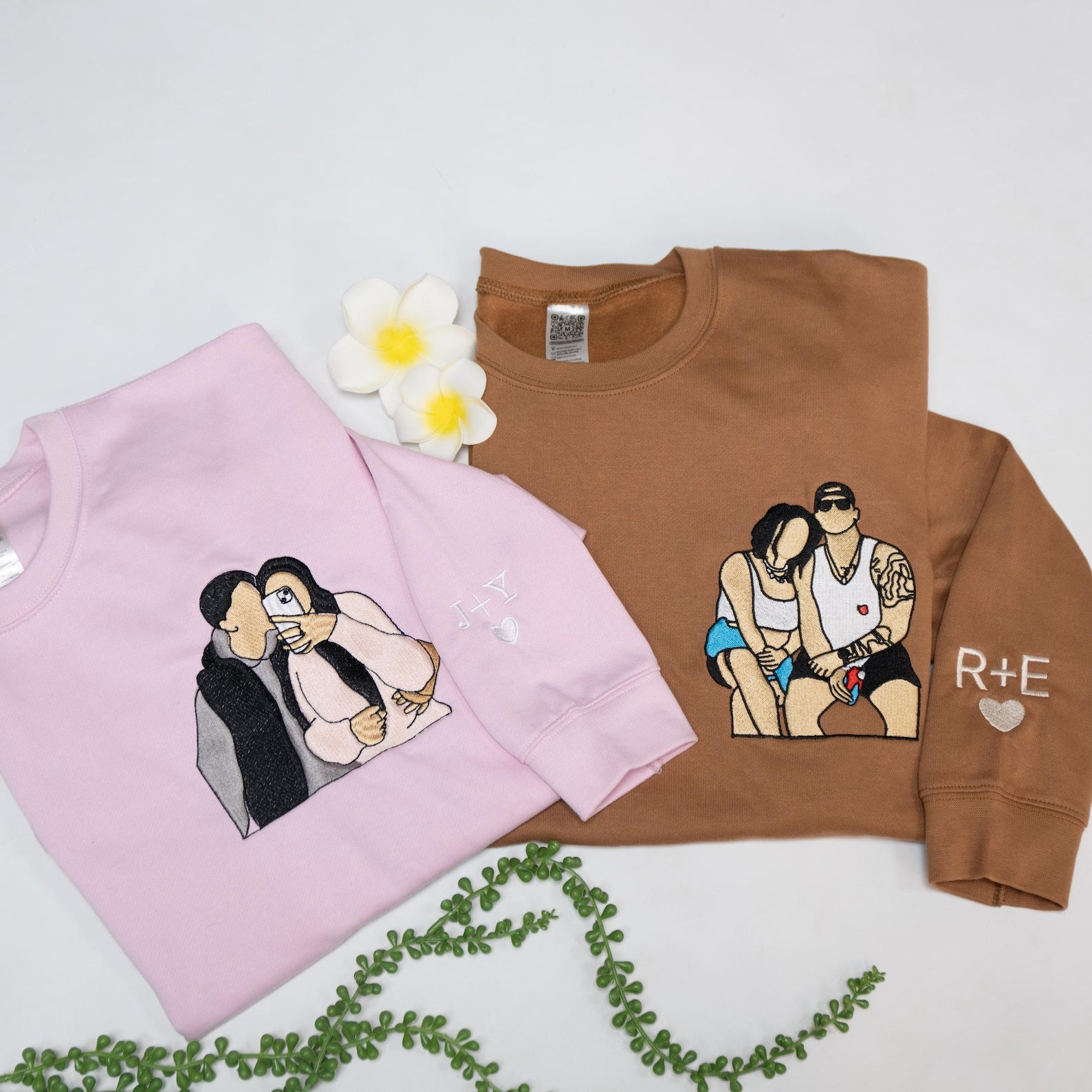 Personalisierte Partner-Hoodies mit gestickten Porträts, individuelle Sweatshirts mit Pärchenfotos