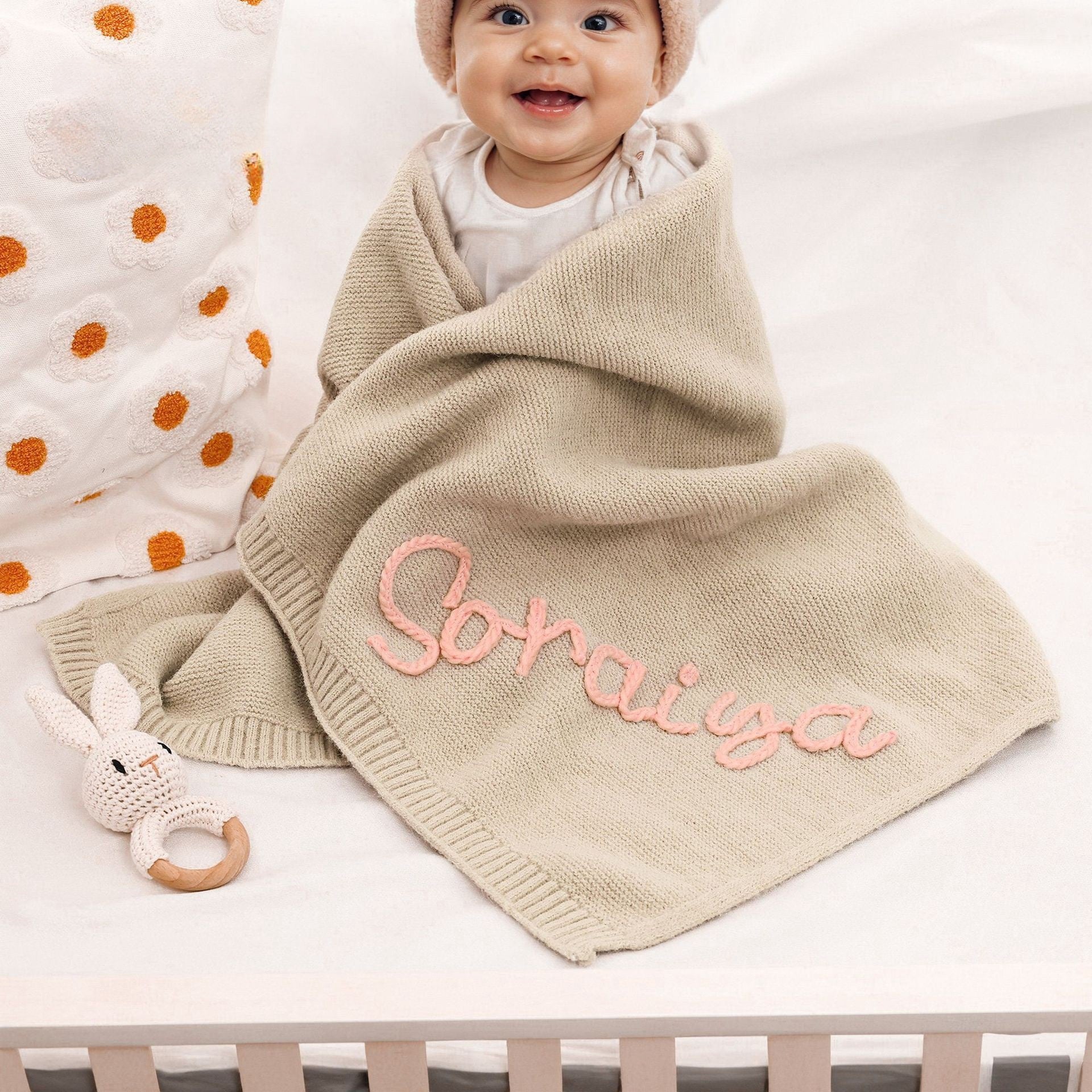 Sanfte Babydecke mit Namen - Aus weichem Strick, ideal für empfindliche Babyhaut Jetzt beliebt